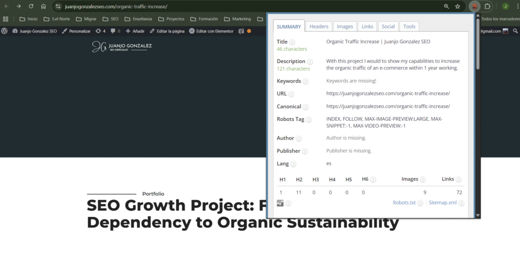 This project shows my ability to apply SEO techniques within WordPress sites, focusing on both user experience and technical optimization. Using only free tools, I am able to improve site speed, indexability, structure, and visibility, creating sites that not only look good, but also perform well in search engines.